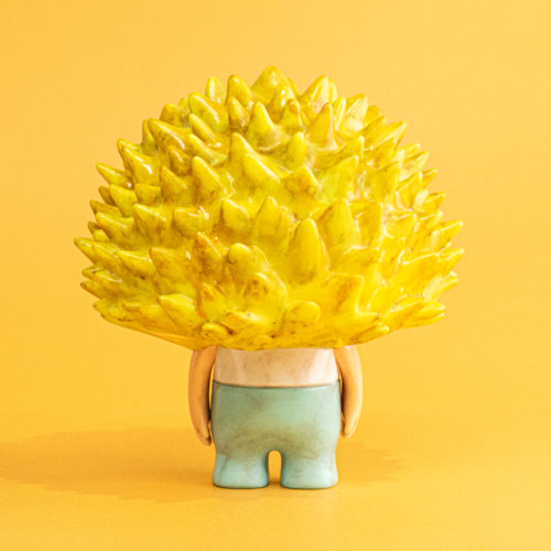 くりさぶろう本体とイガのソフビはそれぞれ異なる硬度で製作しており、イガの着脱が可能です。
