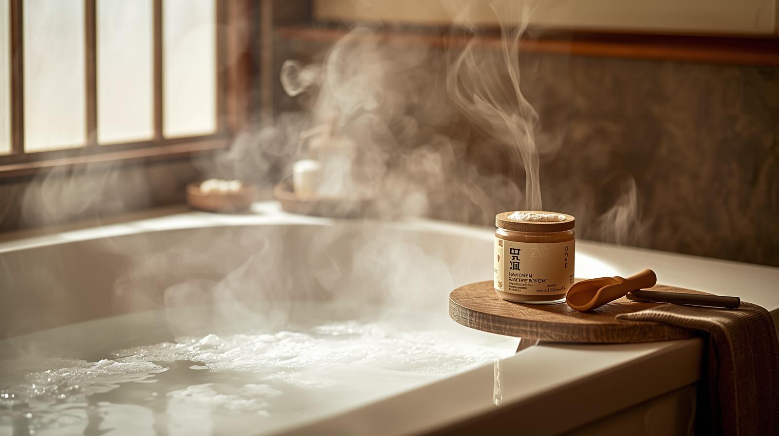 箱根の温泉文化から着想を得て作られたこのバスソルトは、湯に溶けるとやわらかく身体を包み込み、まるで箱根の湯に浸かっているかのような温もりを感じさせます。ゆったりと広がるやさしい香りとともに、日々の疲れをほどき、深いリラックスへと導きます。